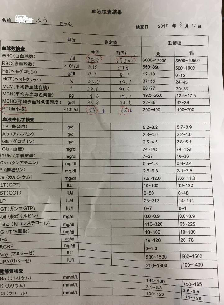 他の数値は改善されてるのですが、血小板かーーーー(´・ω・`)