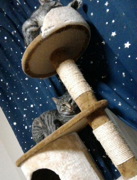 子猫の時はむうちゃんが走れば嵐の中にいるような錯覚に陥るほど暴れまわっていた彼女ですが、もう大人しいもんです。