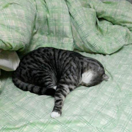 たまに他のニャンズと追いかけっこしたりしてますが、その他は大体ゆっくり寝てますw寒いのが大嫌いな彼女はほぼほぼ布団の中。いつも父か私の布団の中に入ってきて足の間で暖を取りながらスヤスヤ(。-ω-)zzz. . .