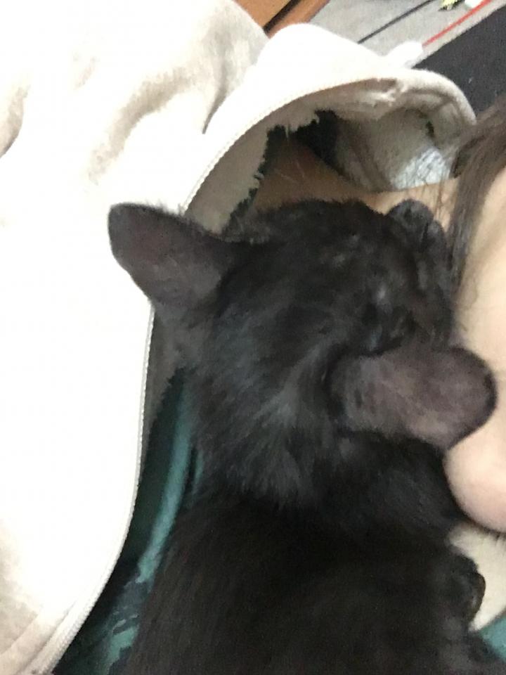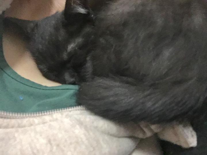 一回起きて、私の首元でマフラー状態で寝ました笑