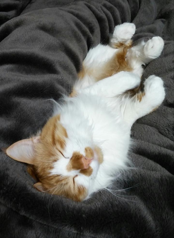 最近まで真ん丸になって寝てたのに、ちょっとずつ姿勢が伸びてきました♪