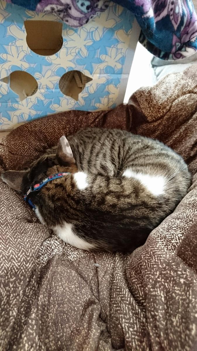 ちなみにちょびはまるっきり布団の中で寝てました‼