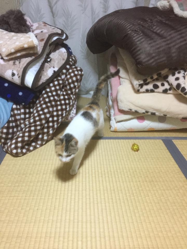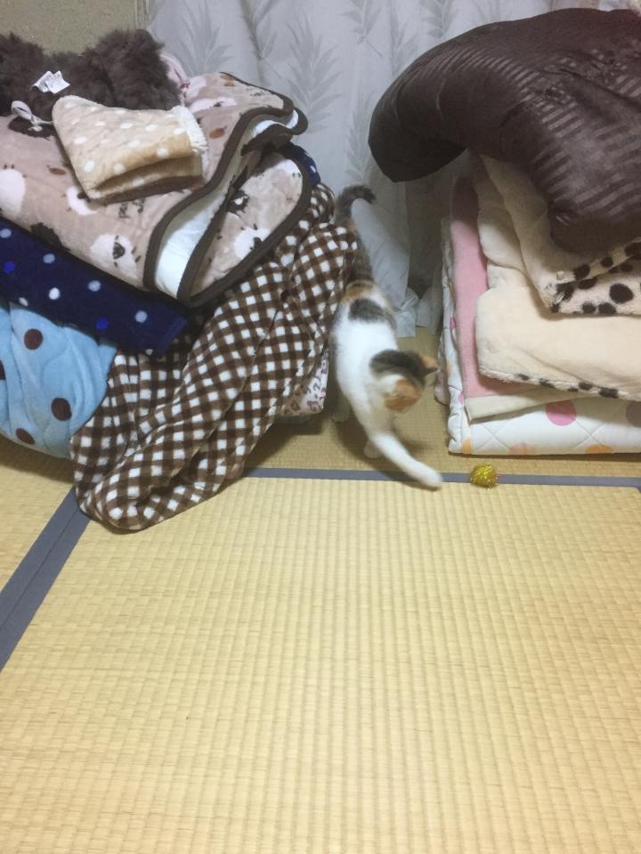 今日のももちゃん、押入れから降りて畳で遊んでいます!