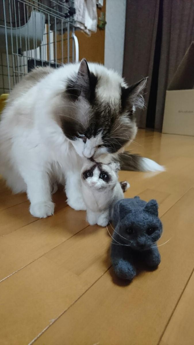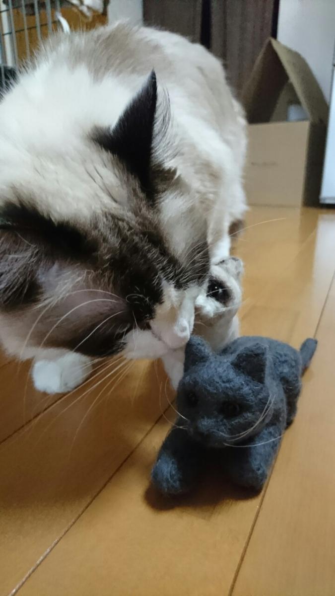 ママさん宅のにゃんずのにおいがするのかしばらく”スンスン”してましたよ。