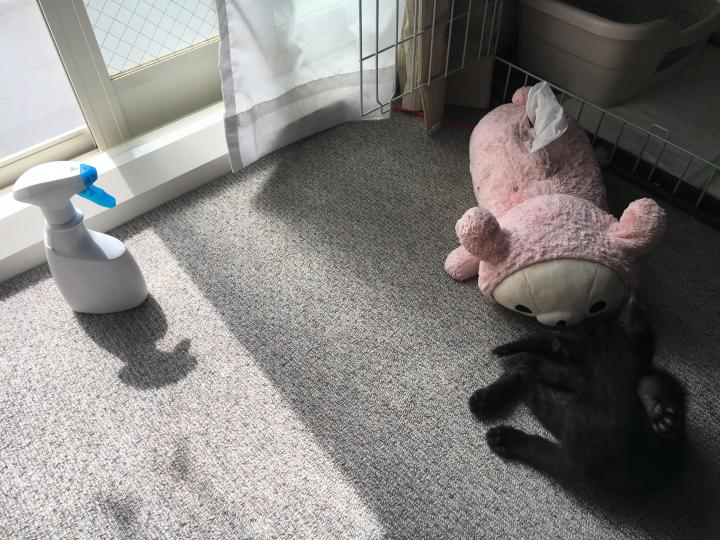 乗るたびに遠くから軽くシュッっとするとびっくりしてすぐ降りてどっか行っちゃいます。