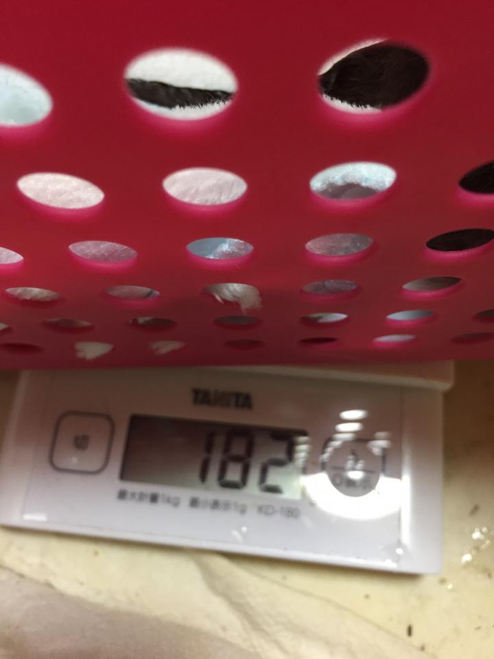 安定の130g、うちに来た時は、一時期、113とか114の時もあったので、心配したけど、順調に増えてる。