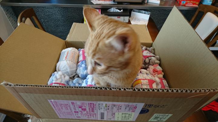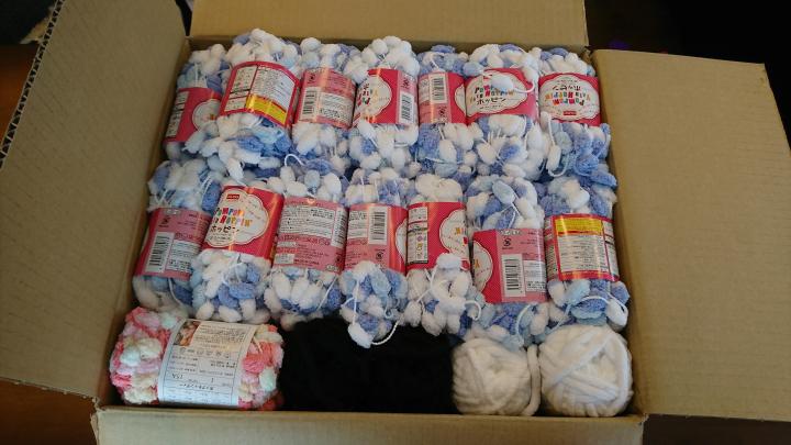 ちなみに、写真に写っているブルーと白の毛糸は、我が家周辺では手に入らず、メーカーにも在庫のない希少品です(´ºωº`)