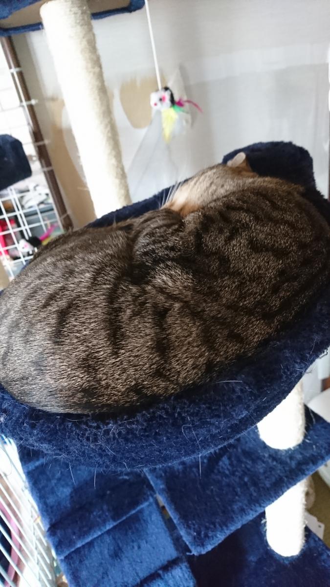 で寝た(笑)綺麗に丸くなって最近にゃんモックで寝ます(*´ω`*)