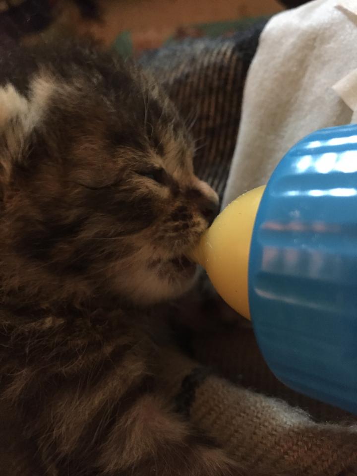 相変わらず、元気に、ミャーミャージタバタ、手のひらチュパチュパ。