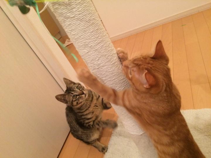 最初の頃、ウーウー威嚇していたミーもユウのこと受け入れたようで……最近はよく二人でいることが多くなりました。