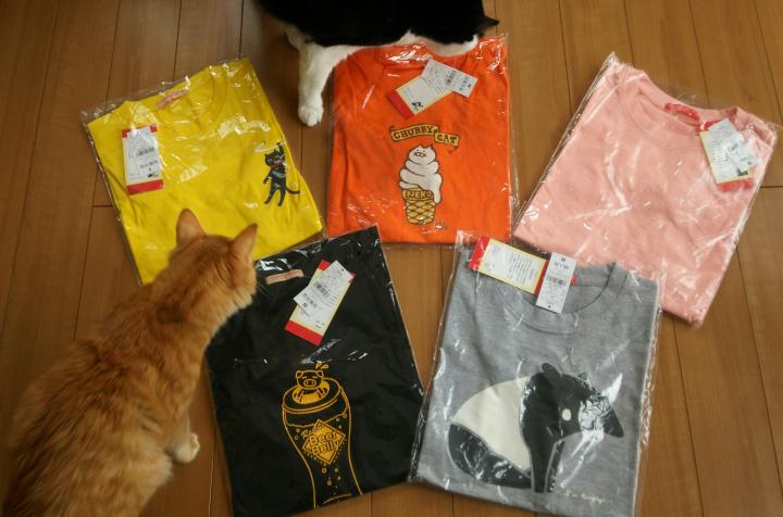 黄色のシャツは 黒ニャンコが安全ピンにつかまっているのですが