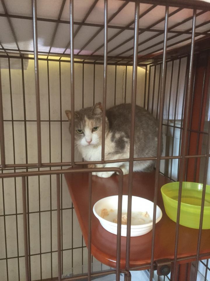 ももちゃんより先に捕獲し、すぐさま動物病院に連れて行き、爪切り・ワクチン・血液検査・ノミダニ駆虫をお願いし二日間預けました。(3年前に避妊手術済)