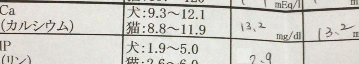 ずっと高かったカルシウム値は変わらず高いままでした。