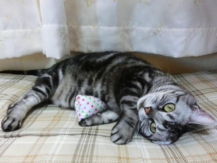 ほろ酔い気分?キャットニップ入キッカーを抱きしめるココさん