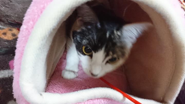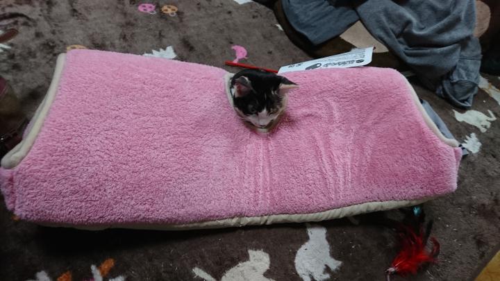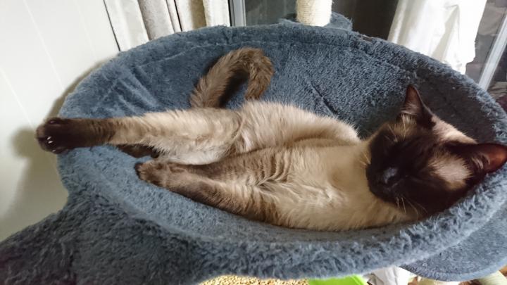 朝起きたら大福さんが青のにゃんもっくの最上階を掻きまくりトイレ行動をしてました。