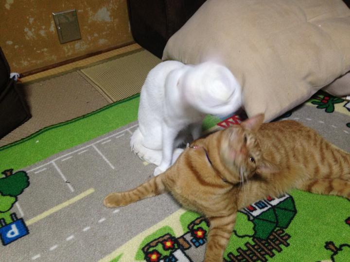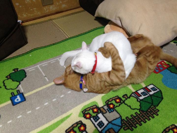 前までは逃げてた、みるくも最近になってプロレスの相手をしてくれてます