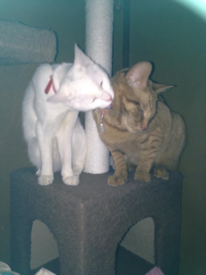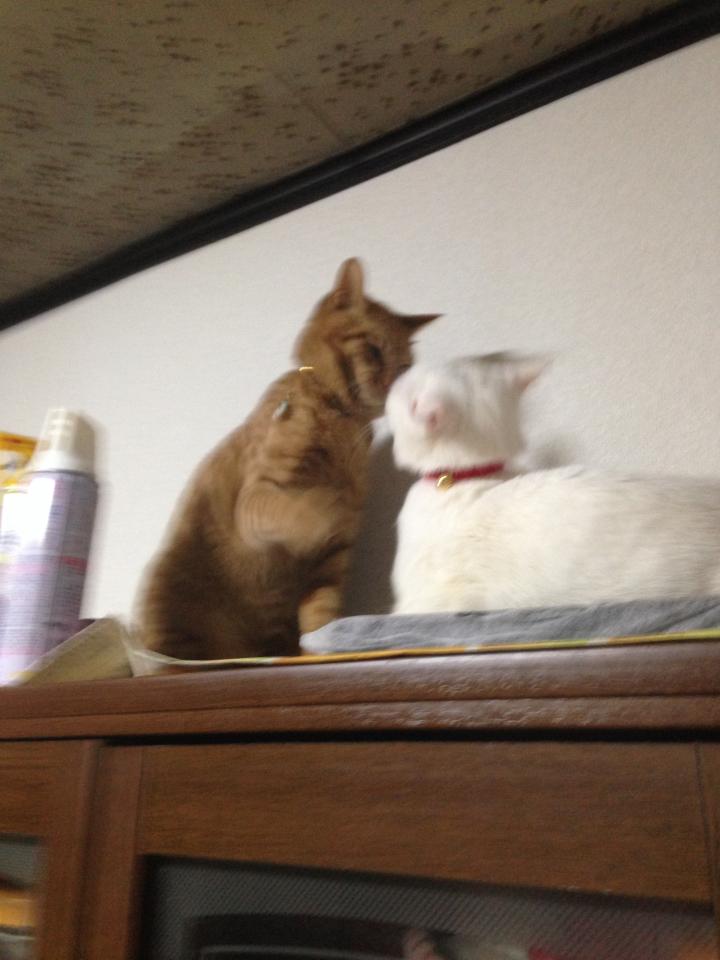 みるくが、ペロペロとぴーすけの顔を舐めてたら
