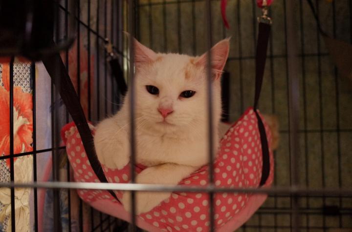 保護主さんからの紹介文に、人は大好きだけど他の猫には無関心と記載があったおもちちゃんは迷惑そう(´・ω・`)