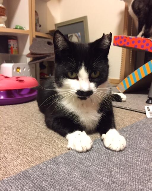 もう1匹黒の男の子も保護しておりますが、まだまだ人前で過ごせません・・・。