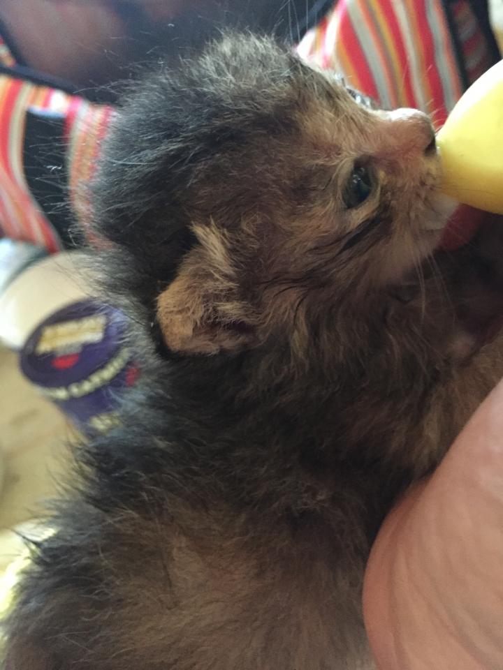 一番最初に、キャリーからひょっこり顔を出した、りくからミルクタイム