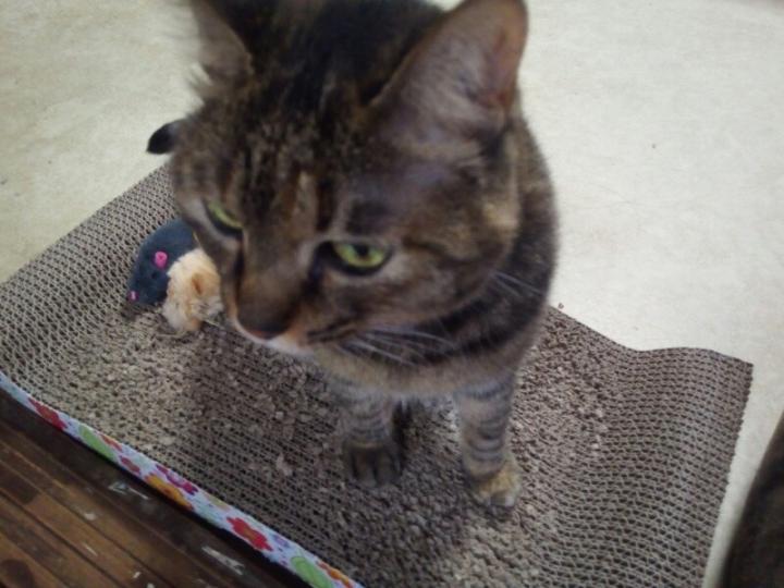 と、グル用の高い爪とぎが気に入ったらしいマロコちゃん。