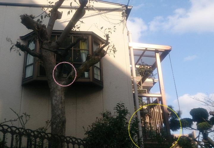 様子を見に外へ出て、出窓を見上げると銀ちゃんと誰かがいます。
