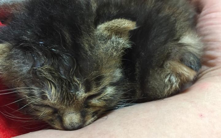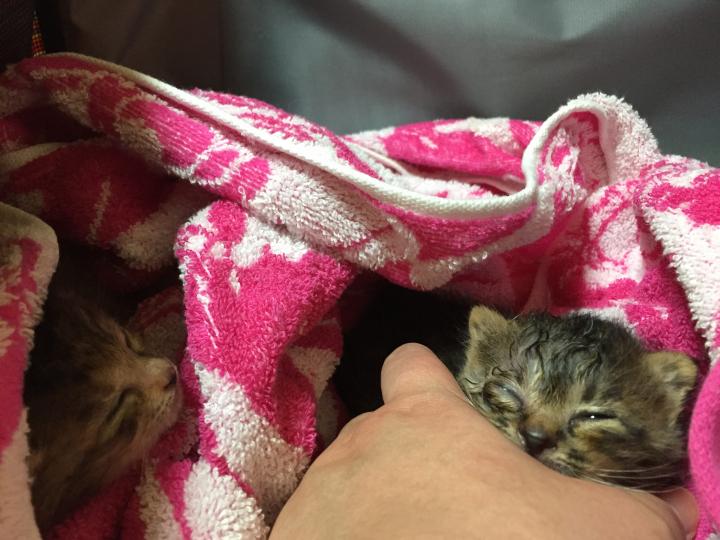 目ヤニで、目が閉じていたので、温かいウエットティッシュで、自動的に開くまで撫でる