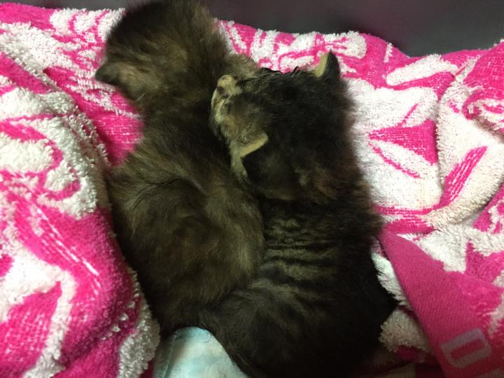 りくを、おしりトントンしたり、ミルクあげたり、チュパチュパさせながら、目をキレイにしている最中、みゅーみゅー言っていた、ふうが静かに…