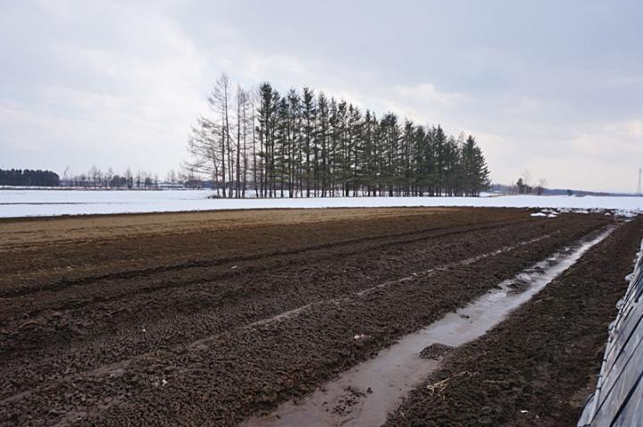 ビニールハウスの周りも、雪の融けた水が川の様に流れていますよ。