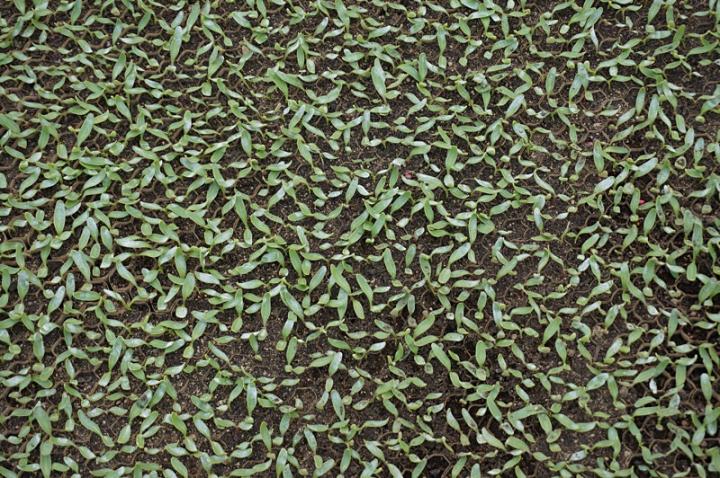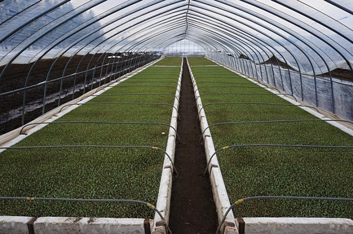 隣のビニールハウス内では、家族総出で種蒔きしたビートの苗が順調に成長中。