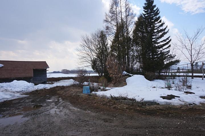 家の庭も、築山部分は雪も消えて、地面むき出し。