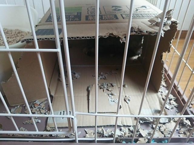 前の晩に汚したので、新築の隠れ家をプレゼントしたのに・・。