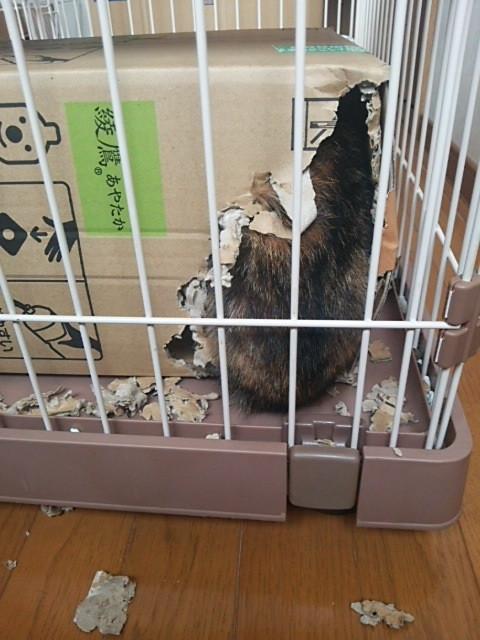 オシッコは昨日の夜、ケージの上でしちゃいました。