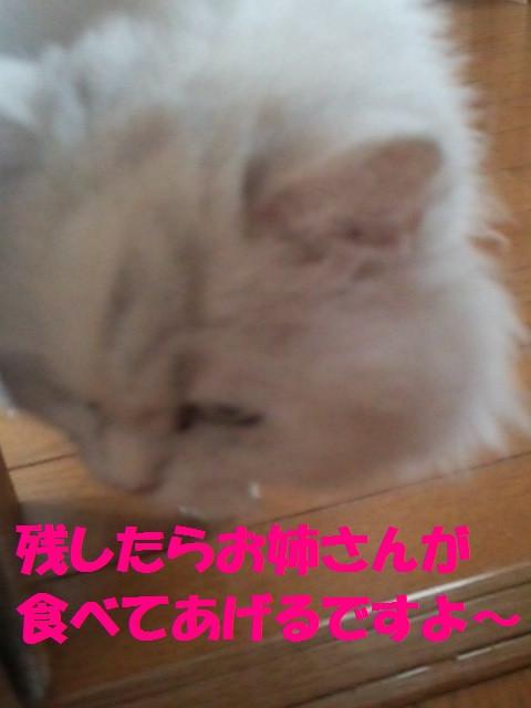 べるは・・。私がパウチとか、ウマウマのカゴから散り出して上に行くのが気になるみたい。