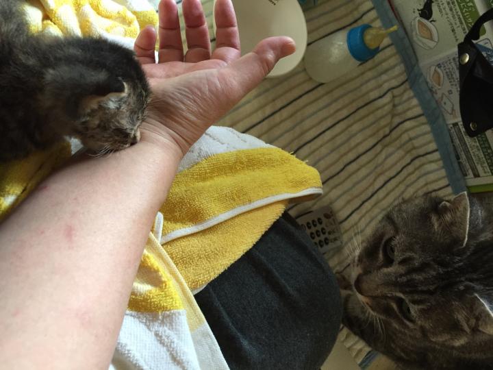 ミルク待の、りくが、授乳中の哺乳瓶によじ登り、哺乳瓶をヾノ。ÒдÓ)ノシ バンバン!!