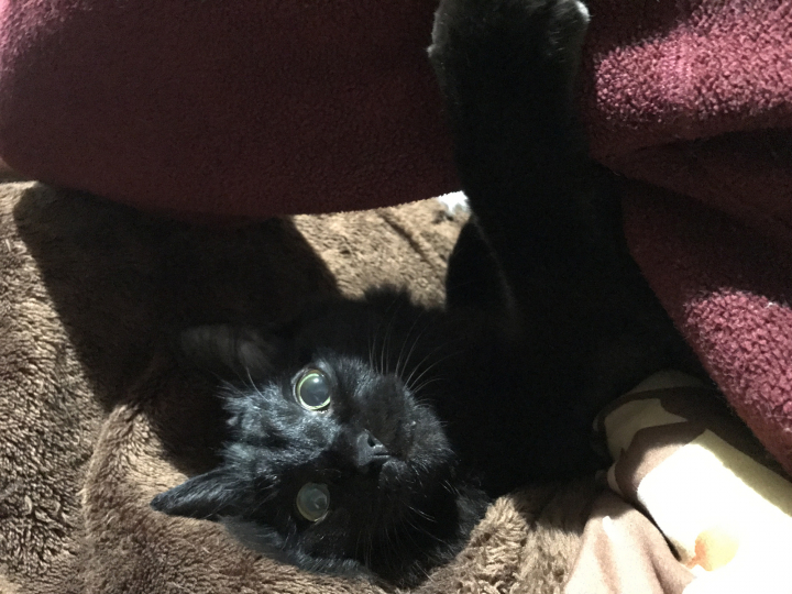 シニア食をガツガツ食べ、猫じゃらしで遊びまくり、スマホの充電ケーブルをガジガジし、ビニール大好きひゃっはー!