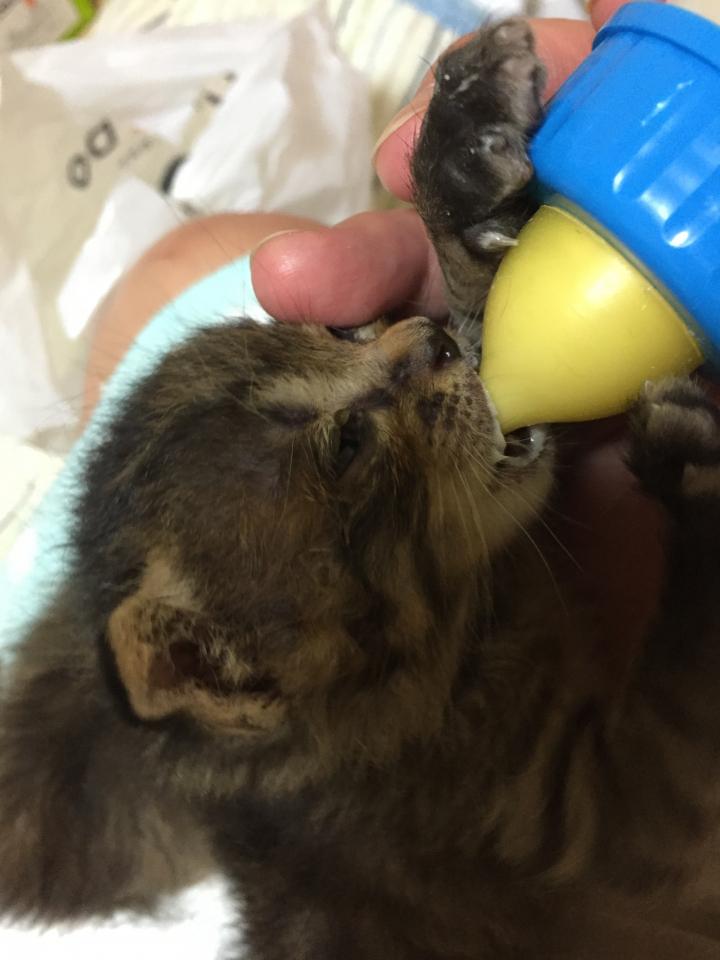 ミルク2巡なのに、りくが、がんばり、哺乳瓶の蓋にかぶりつきました(ノ∀`笑)