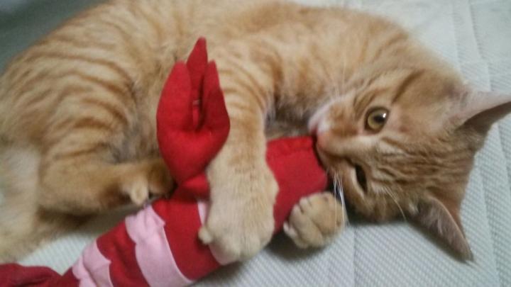 ユズの初めてのお友だち…といえば、けりぐるみのエビ蔵さんです。