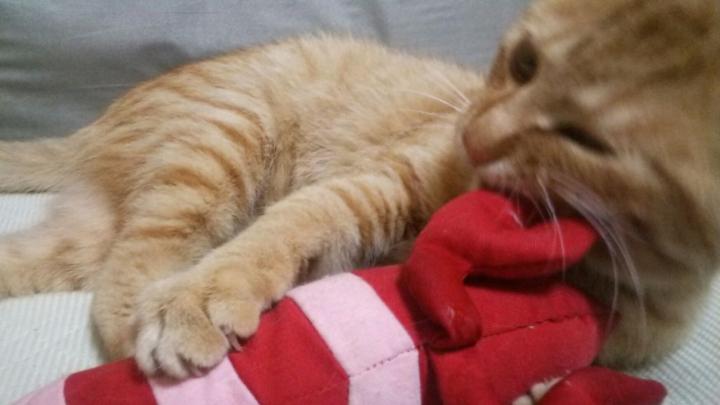 思いっきり噛みついて、けりけり…。