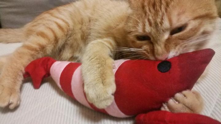 エビ蔵さん、おもちゃ箱で待機です。