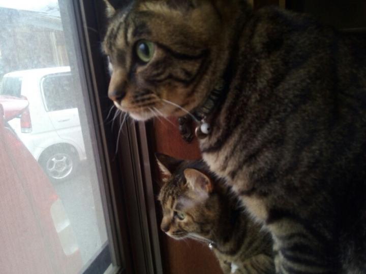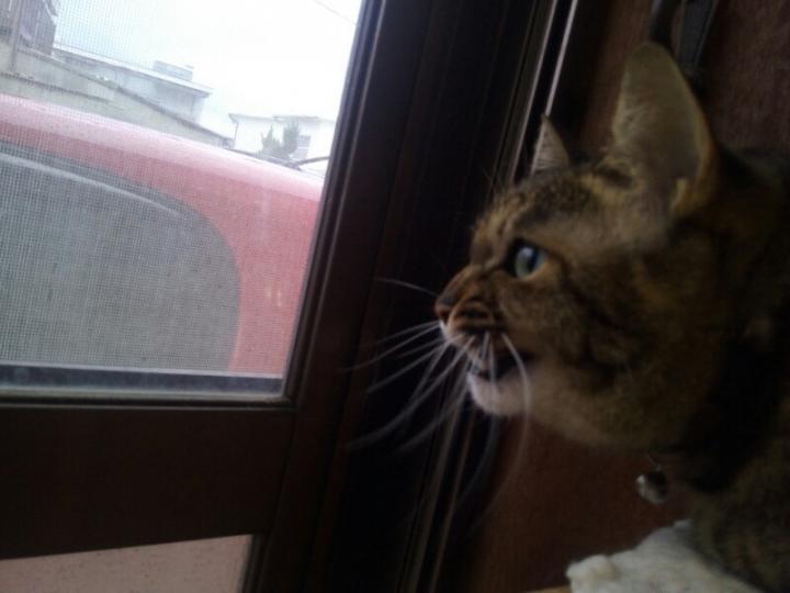 春にて外飼いの多い田舎の我が家では警備が欠かせない様子で、マロコが何かに反応しています。