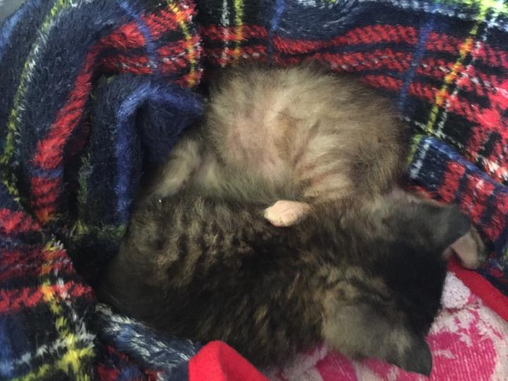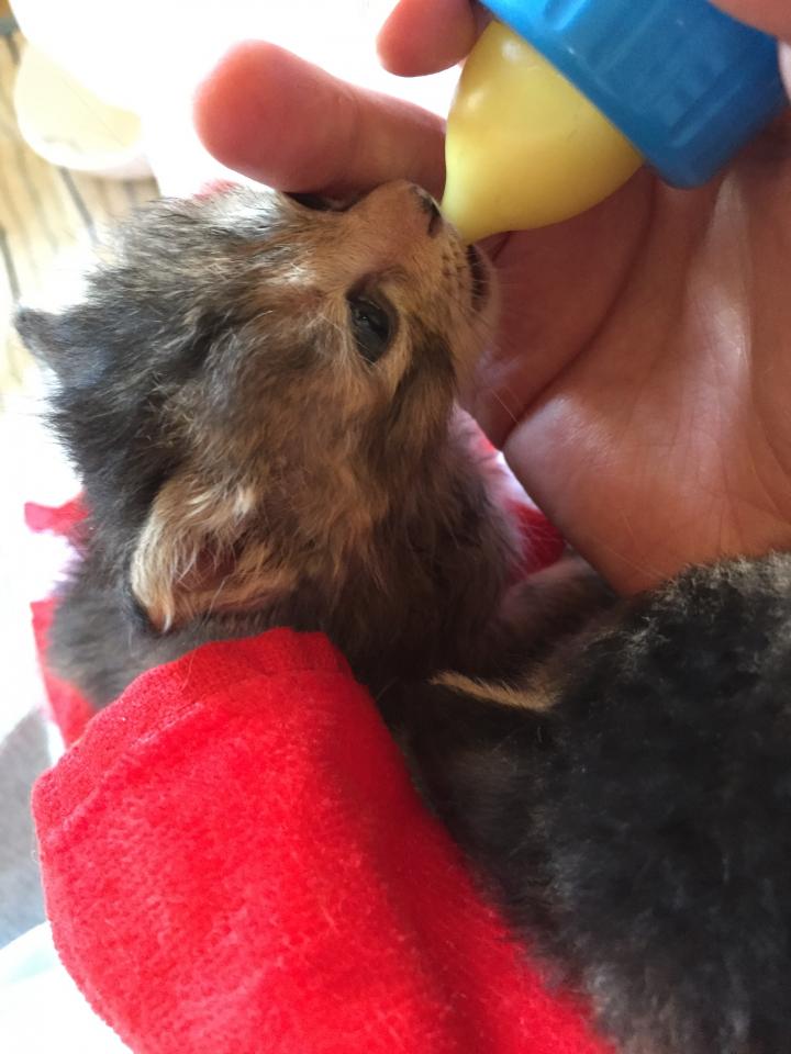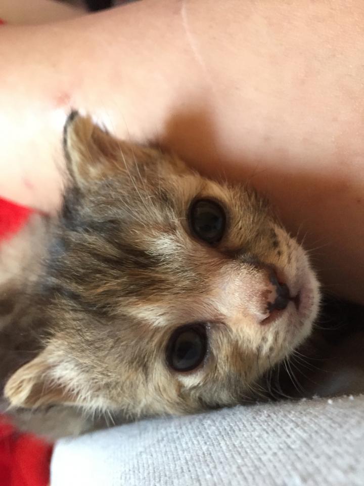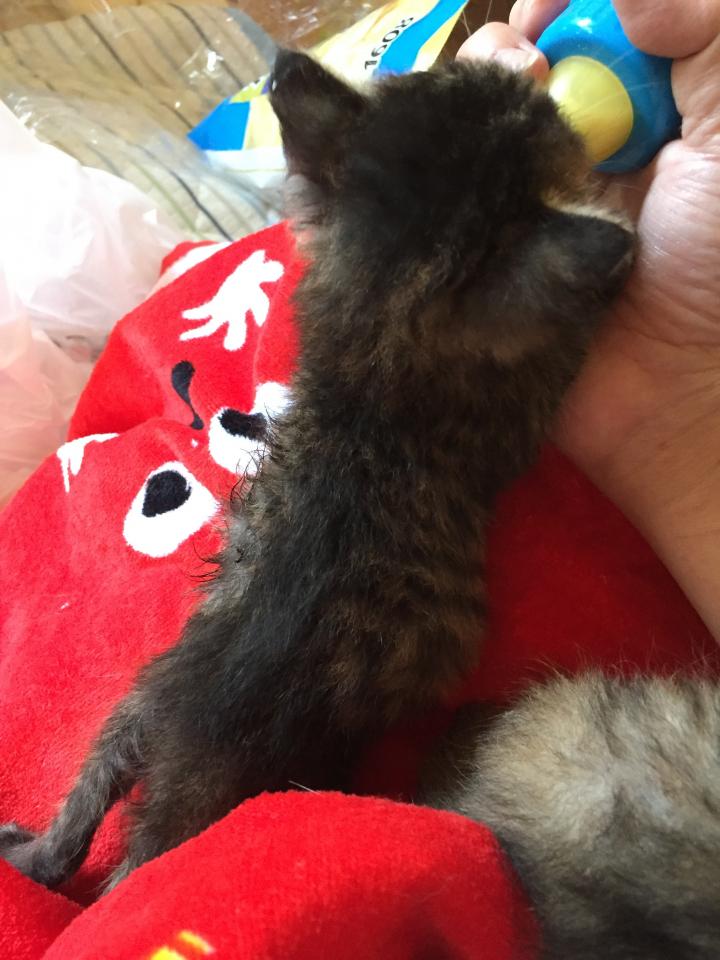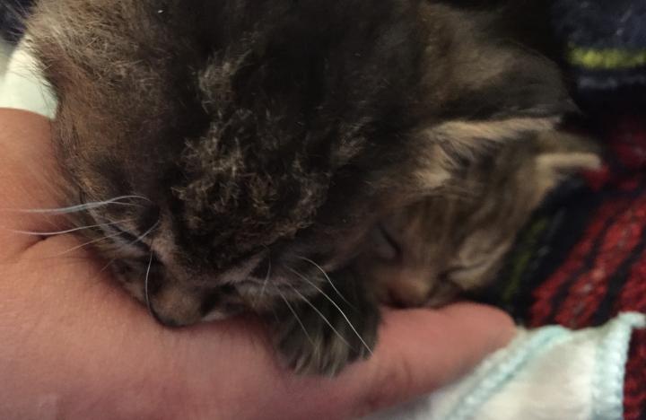 お腹いっぱいになり、腕に顔を埋めて寝ていた、ふうを移動しようとしたら、(﹡ƠωƠ﹡)