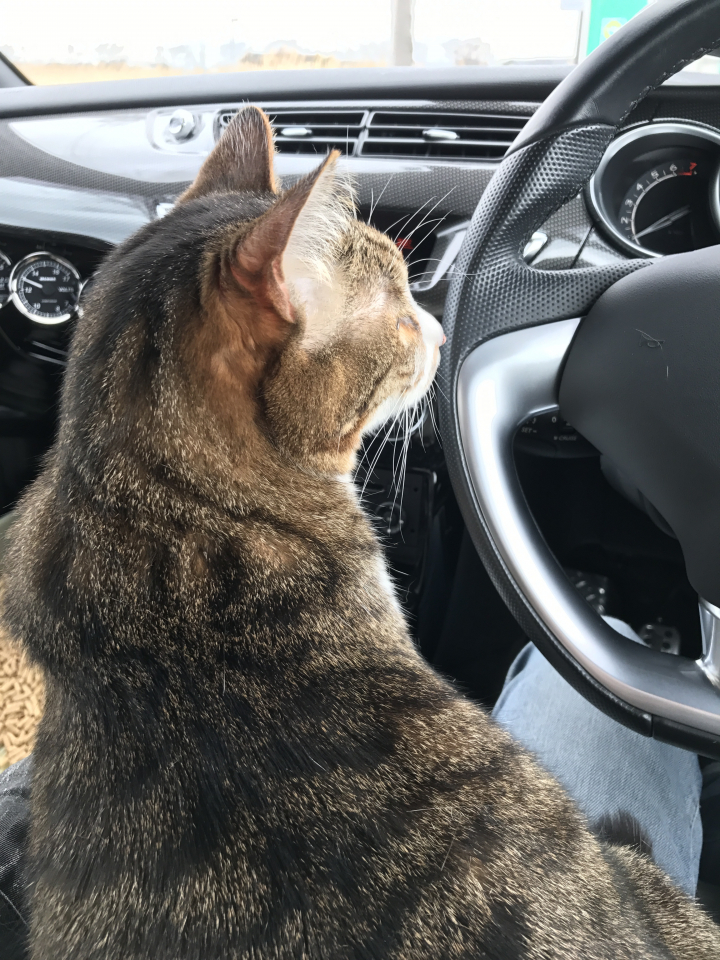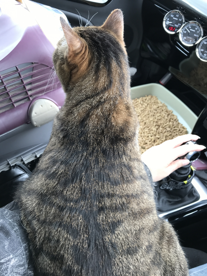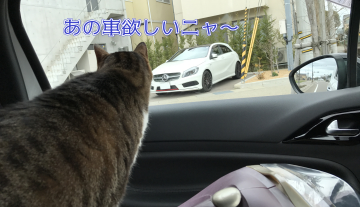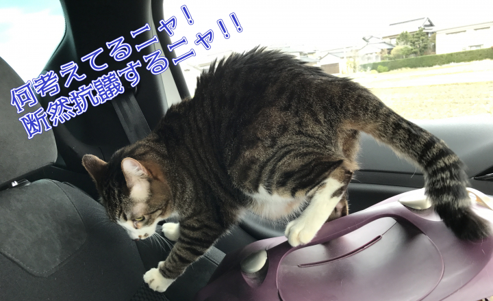 車嫌いのみゅーさんをとっ捕まえて車の中へポイ!