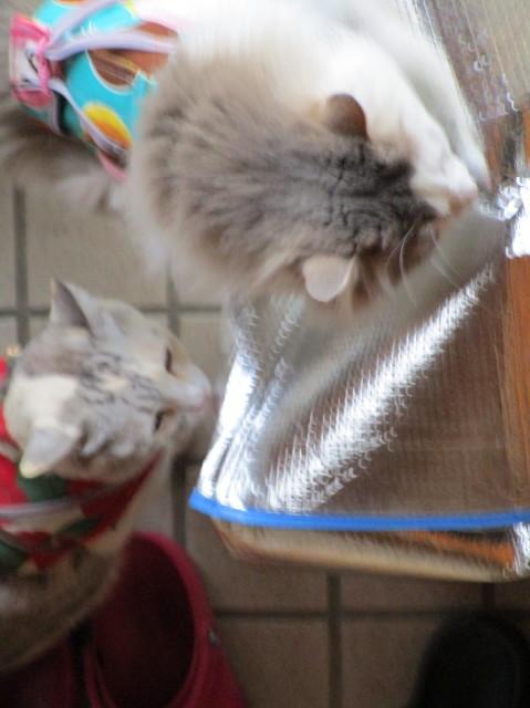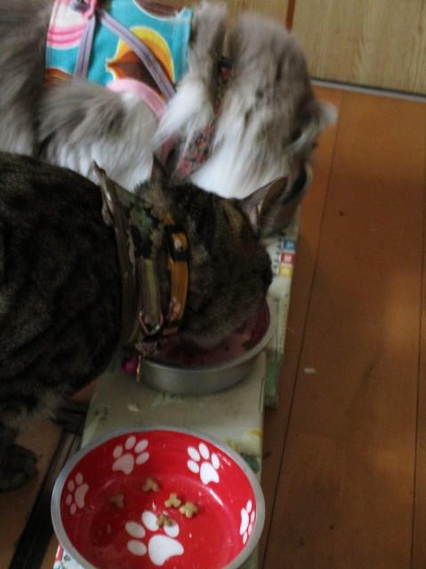 キャットフードは犬が食べても問題ないけど、ドックフードは猫が食べると問題もあるようなのでね。