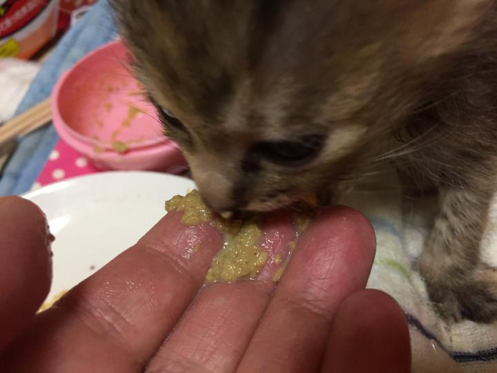 そして、離乳食食べました。ψ(・ω´・,,ψ