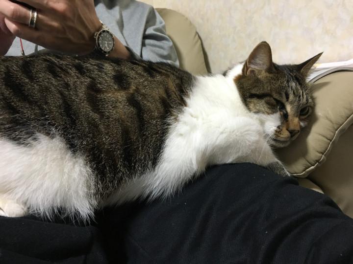 パパがフットマッサージをしている間、必ず膝の上に乗りこの状態(笑)
