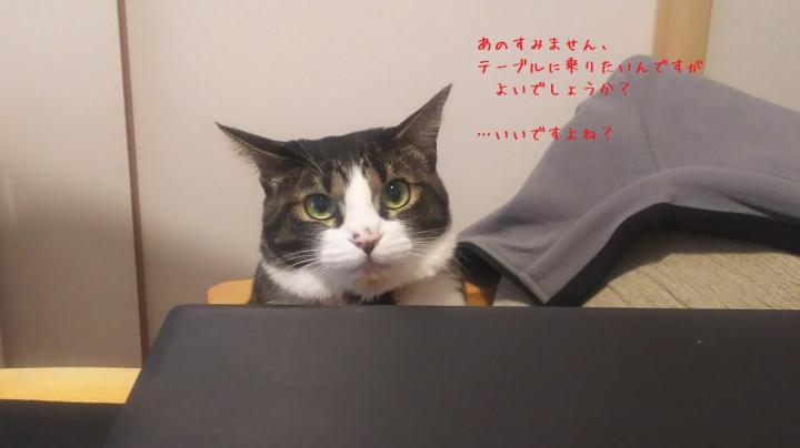 テーブルの上に乗っちゃいけないのはわかってる、わかってるけど乗りたい。