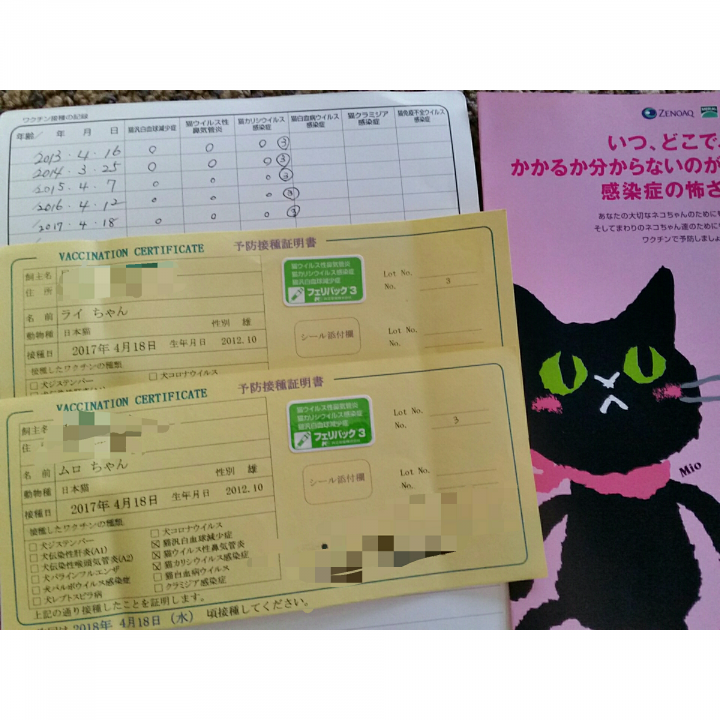 うちのニャンコのワクチンの時期がきたので行ってきました。