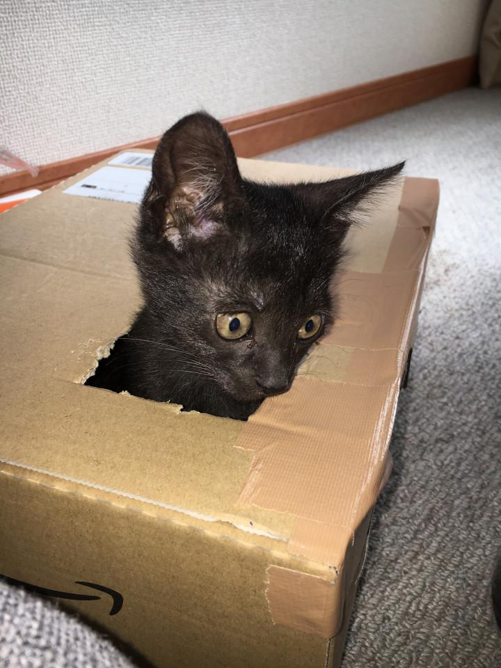 前まですっぽり入って狩ごっこができたこのダンボールも…