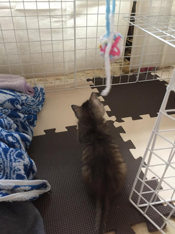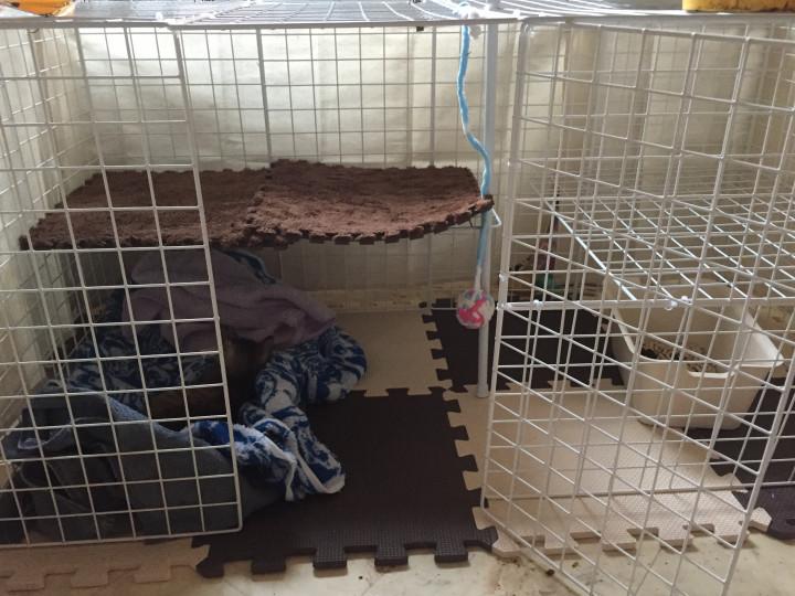 これからは、ハンモックを付けたり、爪とぎみたいなの置いたりしていきます。